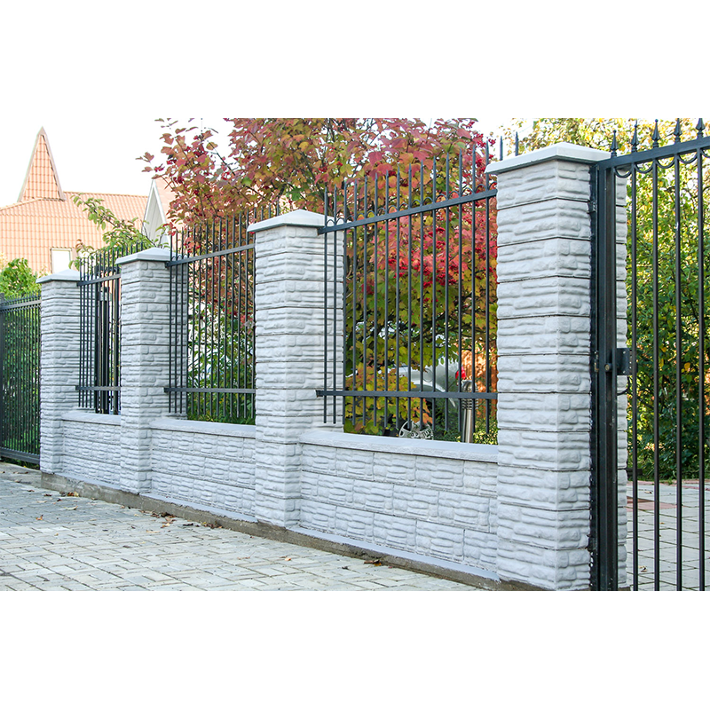 Блоки представляют собой декоративную несъемную опалубку.Продукция отличается четкой проработкой деталей фактуры, благодаря чему создается идентичность облицовки натуральными материалами.Установка блоков обходится намного дешевле, чем устройство кирпичного забора той же высоты. После монтажа забора блоки окрашиваются фасадной краской по бетону в цвет, который более всего подходит вашему дому.Внутри полых блоков удобно монтировать кабель-каналы для установки освещения, звонков, камер наблюдения и т.д. Такого рода заборы являются единой монолитной конструкцией, устойчивой к механическим воздействиям.