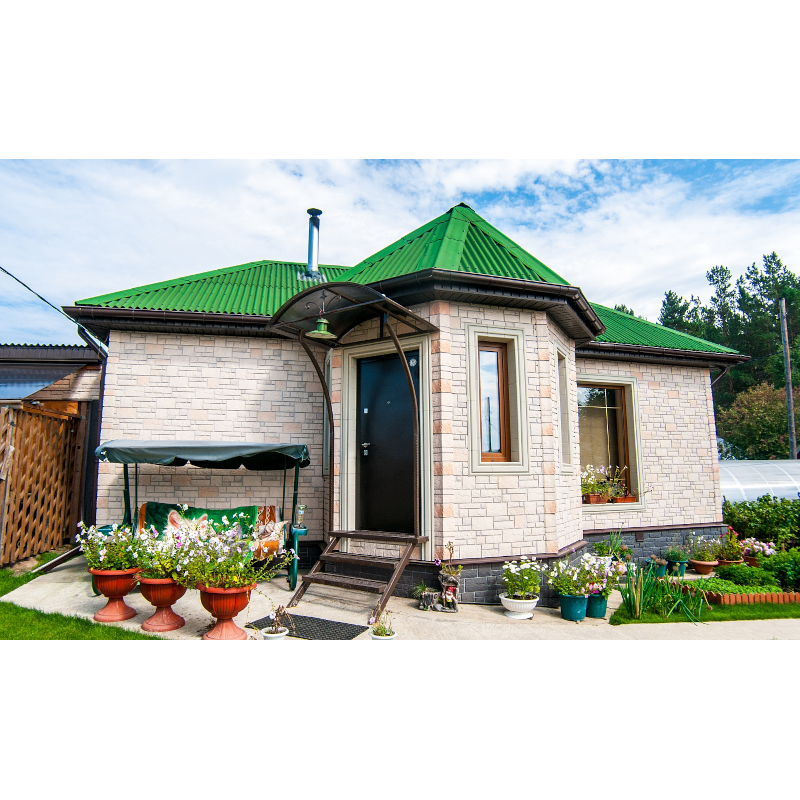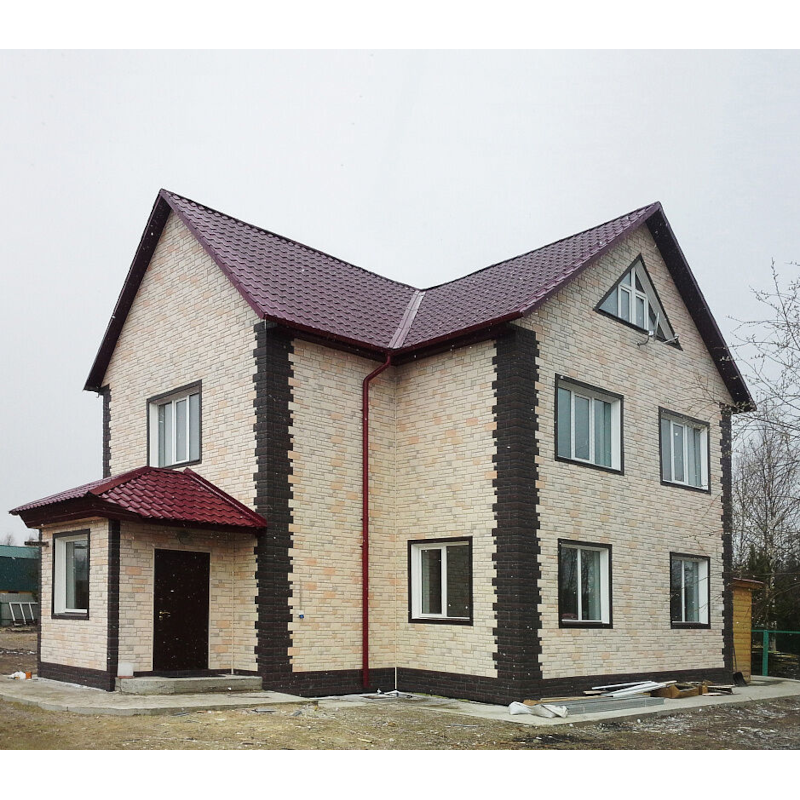 Фасадные панели могут использоваться как для оформления фасада целиком, так и для облицовки фундамента, выделения отдельных деталей.