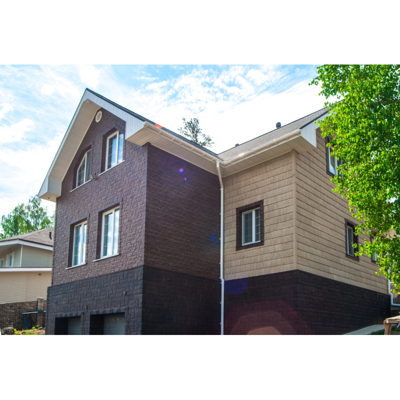Фасадные панели могут использоваться как для оформления фасада целиком, так и для облицовки фундамента, выделения отдельных деталей.