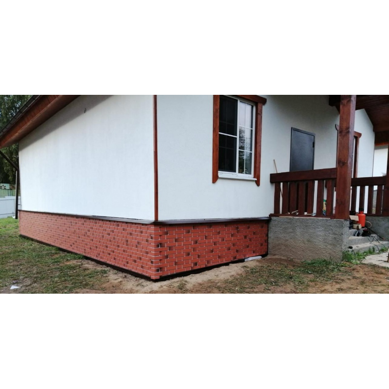 Фасадная панель с фактурой гладкого кирпича и имитацией фламандской кладки из коллекции FLEMISH от Деке. Жженый эффект на поверхности и белые контрастные швы придают панелям максимальное сходство с натуральным кирпичом. Панель изготовлена из полипропилена методом литья под давлением, имеет небольшой вес, поэтому не создает дополнительной нагрузки на несущие конструкции. За счет специальной трехступенчатой системы окраски, материал невосприимчив к УФ-лучам и атмосферным осадкам. Конструкция панели усилена ребрами жесткости, что обеспечивает повышенную устойчивость к механическим нагрузкам. Панели легко и надежно скрепляются между собой, монтируются на обрешетку. Монтаж можно производить в любое время года, за исключением сильных морозов (не ниже -15°С)