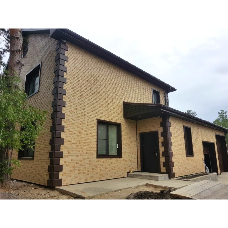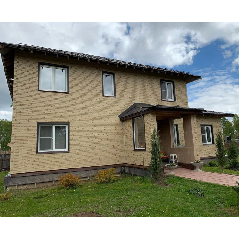 Фасадная панель с фактурой гладкого кирпича и имитацией фламандской кладки из коллекции FLEMISH от Деке. Жженый эффект на поверхности и белые контрастные швы придают панелям максимальное сходство с натуральным кирпичом. Панель изготовлена из полипропилена методом литья под давлением, имеет небольшой вес, поэтому не создает дополнительной нагрузки на несущие конструкции. За счет специальной трехступенчатой системы окраски, материал невосприимчив к УФ-лучам и атмосферным осадкам. Конструкция панели усилена ребрами жесткости, что обеспечивает повышенную устойчивость к механическим нагрузкам. Панели легко и надежно скрепляются между собой, монтируются на обрешетку. Монтаж можно производить в любое время года, за исключением сильных морозов (не ниже -15°С) Фасадные панели могут использоваться как для оформления фасада целиком, так и для облицовки фундамента, выделения отдельных деталей. Фасадные панели под кирпич FLEMISH от Docke — это практичное и стильное решение с гарантией производителя 50 лет! Предлагаем также все необходимые комплектующие для панелей Деке, которые придадут законченный внешний облик и дополнительный шарм фасаду. Купить фасадную панель под гладкий кирпич FLEMISH Желтый жженый от производителя Деке по выгодной цене вы можете в нашем интернет-магазине Удачная покупка. Наши опытные менеджеры рассчитают необходимое количество материала и помогут с выбором комплектующих.