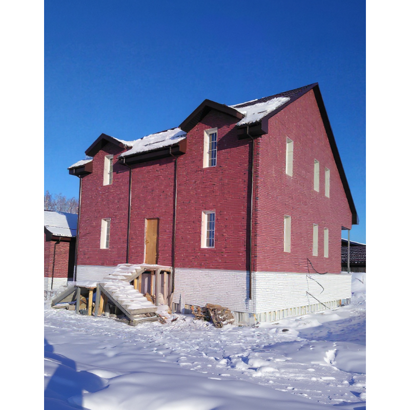 Фасадная панель под натуральный кирпич с имитацией ложковой кладки из коллекции BERG от Деке. Фактурная поверхность и белые контрастные швы придают панелям максимальное сходство с натуральным кирпичом. Панель изготовлена из полипропилена методом литья под давлением, имеет небольшой вес, поэтому не создает дополнительной нагрузки на несущие конструкции. За счет специальной трехступенчатой системы окраски, материал невосприимчив к УФ-лучам и атмосферным осадкам. Конструкция панели усилена ребрами жесткости, что обеспечивает повышенную устойчивость к механическим нагрузкам. Панели легко и надежно скрепляются между собой, монтируются на обрешетку. Монтаж можно производить в любое время года, за исключением сильных морозов (не ниже -15°С)