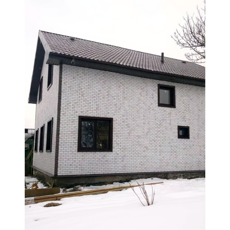 Фасадная панель под натуральный кирпич с имитацией ложковой кладки из коллекции BERG от Деке. Фактурная поверхность и белые контрастные швы придают панелям максимальное сходство с натуральным кирпичом. Панель изготовлена из полипропилена методом литья под давлением, имеет небольшой вес, поэтому не создает дополнительной нагрузки на несущие конструкции. За счет специальной трехступенчатой системы окраски, материал невосприимчив к УФ-лучам и атмосферным осадкам. Конструкция панели усилена ребрами жесткости, что обеспечивает повышенную устойчивость к механическим нагрузкам. Панели легко и надежно скрепляются между собой, монтируются на обрешетку. Монтаж можно производить в любое время года, за исключением сильных морозов (не ниже -15°С)