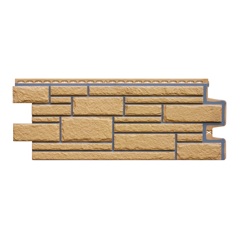 Фасадная панель Grand Line Design Камелот Песочный шов 7006 — отличное решение для отделки фасада. Материал точно воспроизводит красоту природного камня, при этом отличается устойчивостью к коррозии, простотой в уходе и небольшим весом.