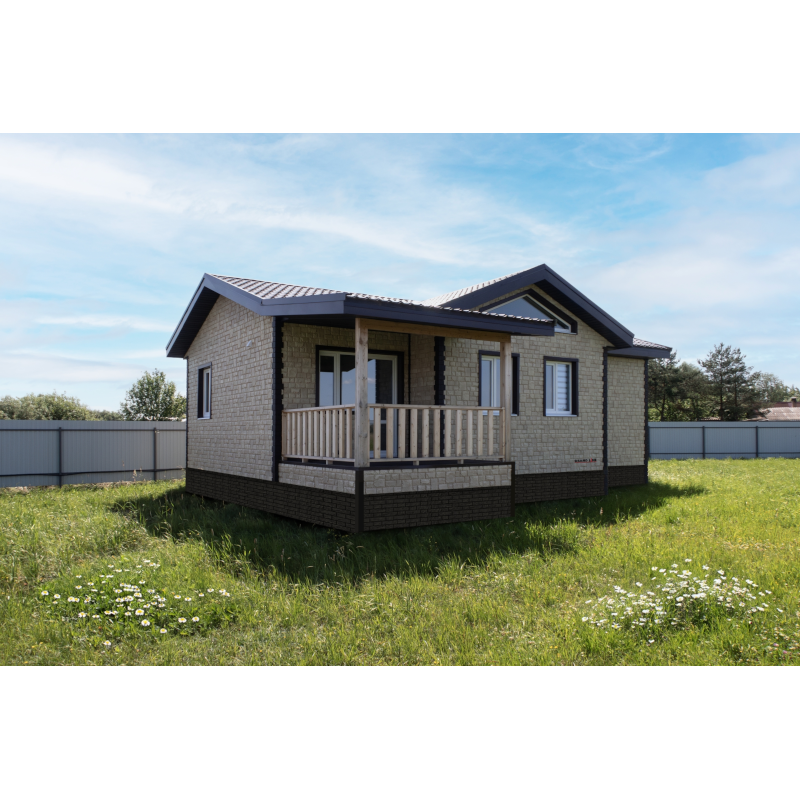 Фасадные панели могут использоваться как для оформления фасада целиком, так и для облицовки фундамента, выделения отдельных деталей.
