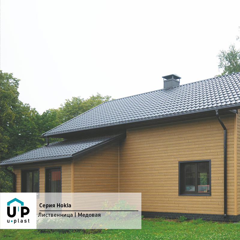 Фасадная панель Ю-Пласт Hokla Лиственница Медовый — оптимальное сочетание надежности и эстетичного вида. Материал точно имитирует вид натурального дерева: дом будет выглядеть респектабельно, при этом отделка не вызовет сложностей и прослужит долго без особых усилий с вашей стороны.