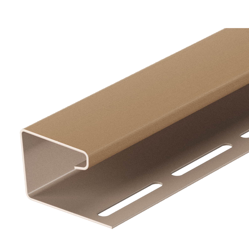 Универсальный виниловый J-профиль от Docke длиной 3 м, цвет Капучино. Используется для оформления мест стыков крыши и фронтона, при отделке оконных и дверных проемов, в качестве приемного профиля для софитов, а также как декоративный и защитный угловой элемент.