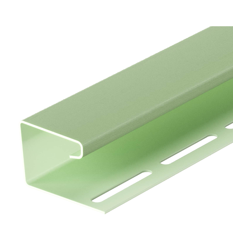 Универсальный виниловый J-профиль от Docke длиной 3 м, цвет Киви. Используется для оформления мест стыков крыши и фронтона, при отделке оконных и дверных проемов, в качестве приемного профиля для софитов, а также как декоративный и защитный угловой элемент.