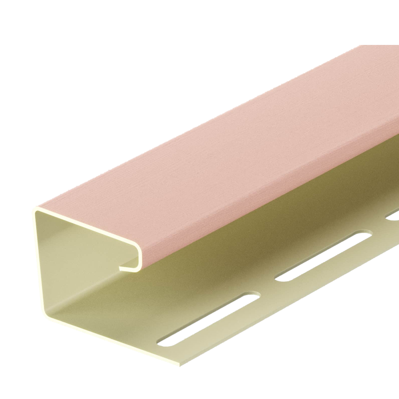 Универсальный виниловый J-профиль от Docke длиной 3 м, цвет Персик. Используется для оформления мест стыков крыши и фронтона, при отделке оконных и дверных проемов, в качестве приемного профиля для софитов, а также как декоративный и защитный угловой элемент.