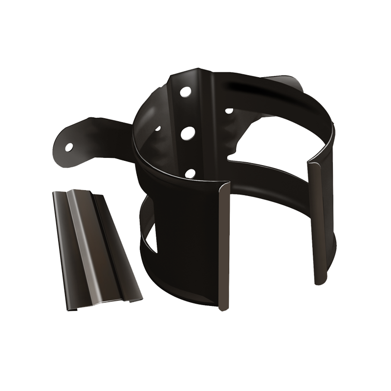 Хомут трубы на дерево D90 мм коричневый RR32 с покрытием Granite Double от Гранд Лайн. Используется для фиксации водосточной трубы на стенах строений. Поставляется в комплекте с крепежом для дерева.