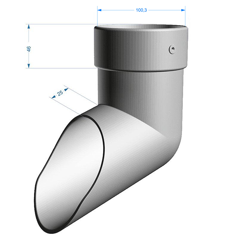 Колено сливное D100 мм цвета Шоколад серии LUX от производителя Docke. Завершающий элемент водостока, устанавливается на концах водосточных труб и служит для отвода воды от фасада строения на землю или в ливневую канализацию.