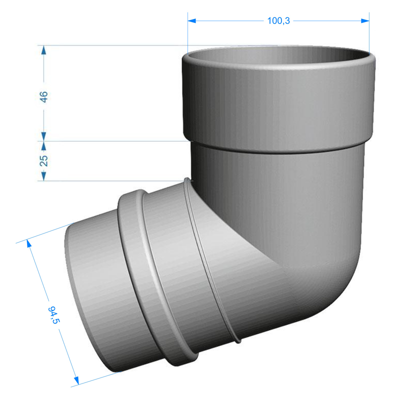 Колено трубы 72° D100 мм цвета Графит серии LUX от производителя Docke. Элемент водосточной системы, соединяет воронку с водосточной трубой и применяется для огибания карнизного вылета крыши, а также позволяет соединять трубы под углом, если нужно обойти архитектурный элемент на фасаде.