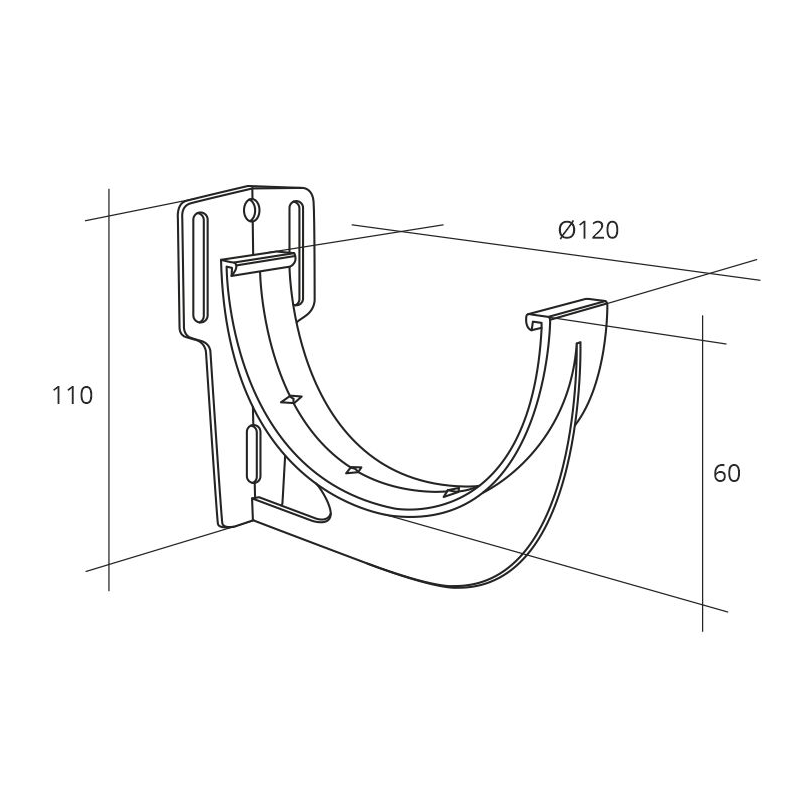 Кронштейн желоба ПВХ компакт D120 мм белый от Гранд Лайн. Кронштейн используется для фиксации водосточного желоба и монтируется на лобовую доску. Также возможна его установка и без лобовой доски, для этого используется удлинитель кронштейна.