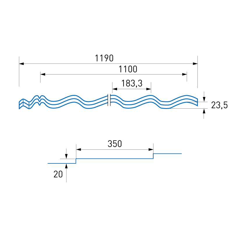 Покрытие — Satin® цвета RAL6005. Формат поставки: в м², длины под расчет. Длина — 500 ÷ 8000 мм. Профиль — Classic высотой 23,5 мм.
