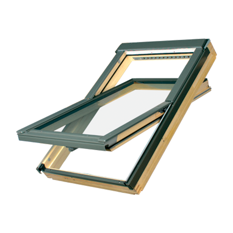 Среднеповоротное окно FTP-V произведено из высококачественной древесины сосны, пропитано антисептиком и покрыто двумя слоями полиакрилового лака на водной основе.
