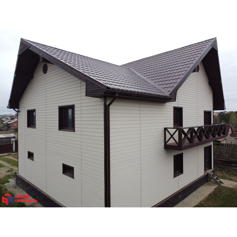 Сайдинг Альта-Брус цвета Ивори подходит для облицовки фасадов любой сложности. Он превосходно смотрится как в сочетании с более насыщенными оттенками, так и в комбинации со светлыми аксессуарами для монтажа.