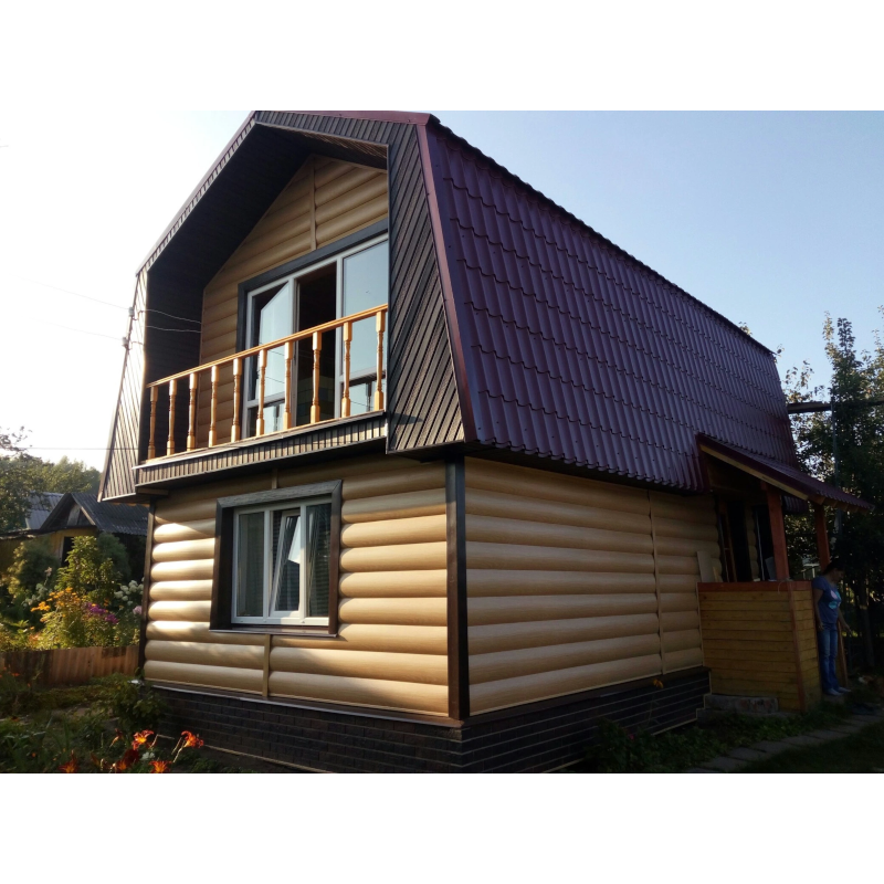 Сайдинг Альта-Профиль Blockhouse Люкс BH-01 Каштан 3100 мм поможет вам создать эстетичный фасад. Материал винил с текстурным рисунком на поверхности внешне имитирует древесину, сохраняя все преимущества практичной основы.