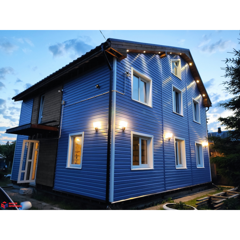 Сергей Красное село 05.09.2022 Цвет сразу привлёк наше внимание в магазине , оказалось это акриловый сайдинг , и меньше будет выгорать . Синий цвет очень яркий , поэтому мы и захотели его купить , смотрится с белыми окнами и софитами конечно здорово .