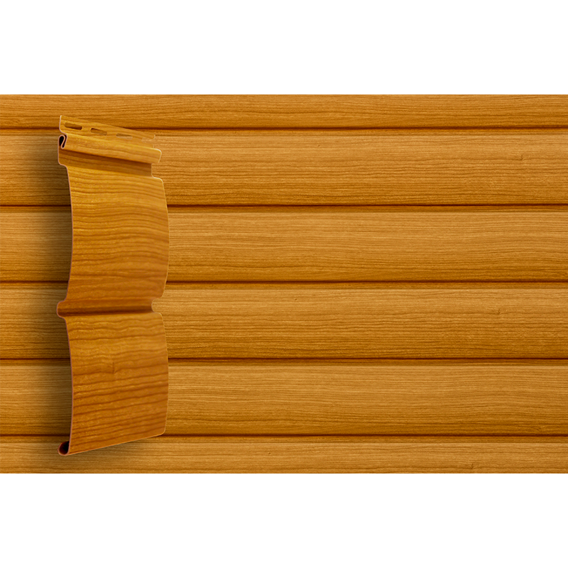 Панель сайдинга Блок-хаус Tundra выполнена в форме натурального бруса и имеет рельефную фактуру поверхности с волокнами и сучками точно имитирующую рисунок дерева. Сайдинг данной серии имеет повышенную устойчивость к выгоранию. Палитра коллекции представлена в оттенках натуральных пород древесины.