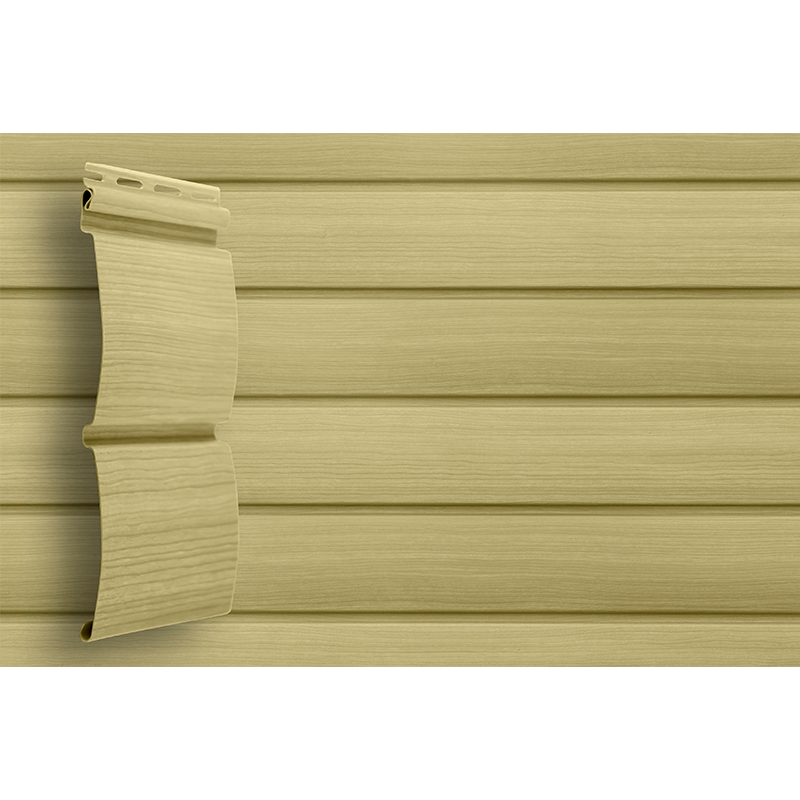 Панель сайдинга Блок-хаус Tundra выполнена в форме натурального бруса и имеет рельефную фактуру поверхности с волокнами и сучками точно имитирующую рисунок дерева. Сайдинг данной серии имеет повышенную устойчивость к выгоранию. Палитра коллекции представлена в оттенках натуральных пород древесины.
