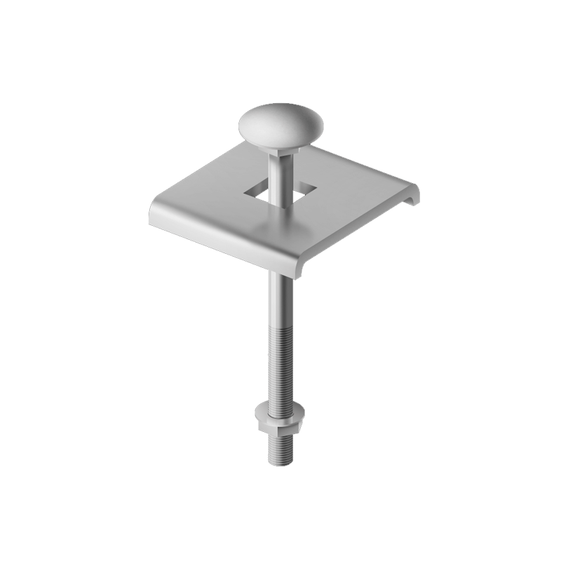 Универсальная оцинкованная скоба с отверстием, один из вариантов крепления сварной сетки к столбу или к другой опоре. Комплектуется болтом и гайкой M6. Загнутые края позволяют надежно зафиксировать сетку к каркасу ограждения. Применяется при монтаже со сверлением опорной конструкции.