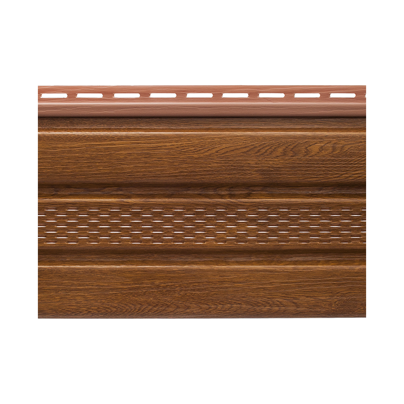 Виниловый софит под дерево с перфорацией по центру от Альта-Профиль длиной 3 м цвета Дуб золотистый. Софиты предназначены для декоративной отделки свесов кровли, фронтонов, потолков открытых террас, беседок, веранд, крылец. Софиты с перфорацией обеспечивают вентиляцию подкровельного пространства, отвод испарений, что препятствует развитию плесени и грибка в подкровельных помещениях. Применяются для подшивки выступающих элементов кровли: козырьков, карнизов, коньков, свесов. Преимущества виниловых софитов: — Не подвержены грибку и плесени — Не впитывают воду — Выдерживают существенные перепады температур — Имеют небольшой вес — Доступная цена Купить виниловый софит под дерево с центральной перфорацией цвета Дуб золотистый от Альта-Профиль по приятной цене вы можете в нашем интернет-магазине Удачная покупка. Наши менеджеры рассчитают необходимое количество материала и помогут с выбором комплектующих.