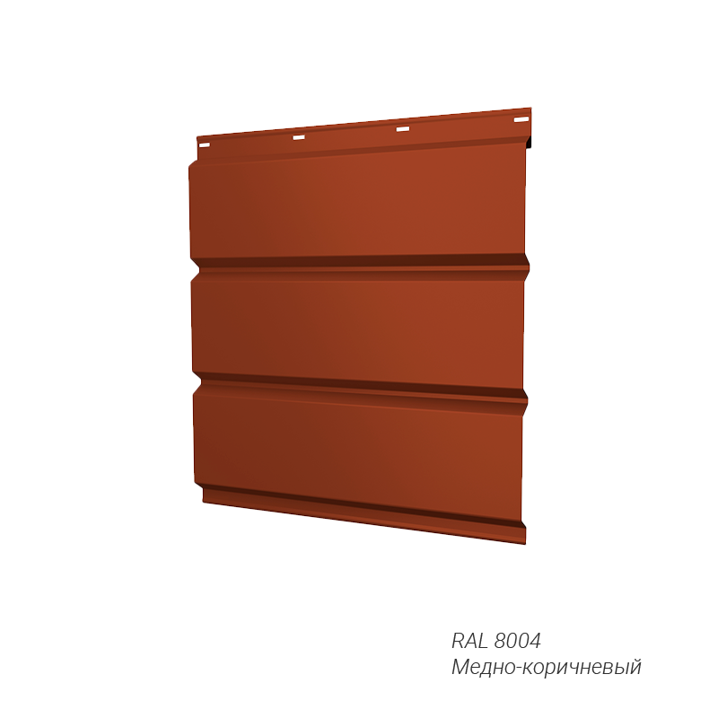 Металлический сплошной софит с глянцевым покрытием Satin от Гранд Лайн, толщиной стали 0,5 мм. Длина панели софита позволяет резать софит нужного размера от 0,2 м и до 6 м (кратно 0,02 м). Софиты предназначены для декоративной отделки свесов кровли, фронтонов, потолков открытых террас, беседок, веранд, крылец. Сплошные софиты (без перфорации) подходят для подшивки фронтонных свесов, а также могут применяться для обшивки всего фасада. Для обеспечения максимально удобных условий эксплуатации, при монтаже сочетают перфорированные и частично перфорированные софиты. Софиты из оцинкованной стали Гранд Лайн представлены в широкой палитре цветов и покрытий, и расширяют возможности создания оригинального внешнего вида строения. Гладкое глянцевое покрытие Satin® толщиной 25 мкм на основе полиэстера с защитным слоем цинка (140 гр\м2) защищает от УФ-лучей, механических повреждений и коррозии. Покрытие Satin — удачный баланс между физико-механическими характеристиками и стоимостью. Преимущества металлических софитов: — Пожароустойчивы — Высокая устойчивость к деформациям — Выдерживают существенные перепады температур — Большой выбор цветов и покрытий — Длительный срок службы, Купить металлический софит без перфорации с покрытием Satin от Гранд Лайн по приятной цене вы можете в нашем интернет-магазине Удачная покупка. Наши менеджеры рассчитают необходимое количество материала и помогут с выбором комплектующих.