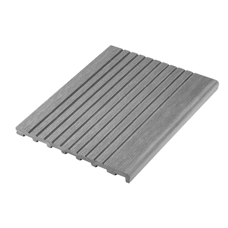 Полнотелая ступень UnoDeck длиной 3 м. с текстурой крупного брашированного вельвета, сочетается с террасной доской Decking Urban в цвете Серый/Дымчатый дуб.