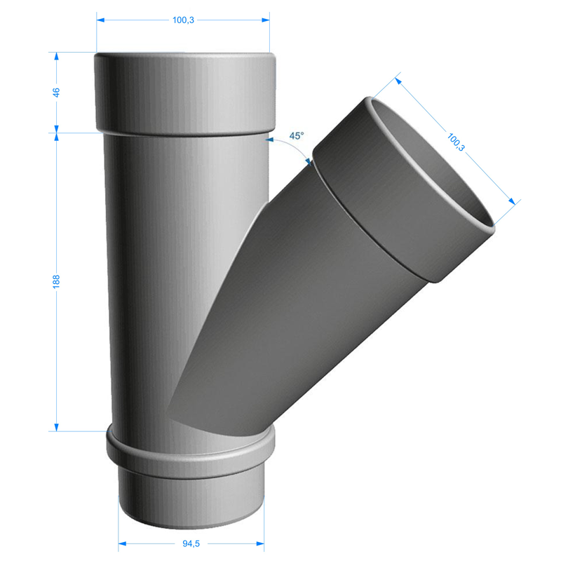 Тройник трубы 45° Docke LUX D100 Карбон RR33