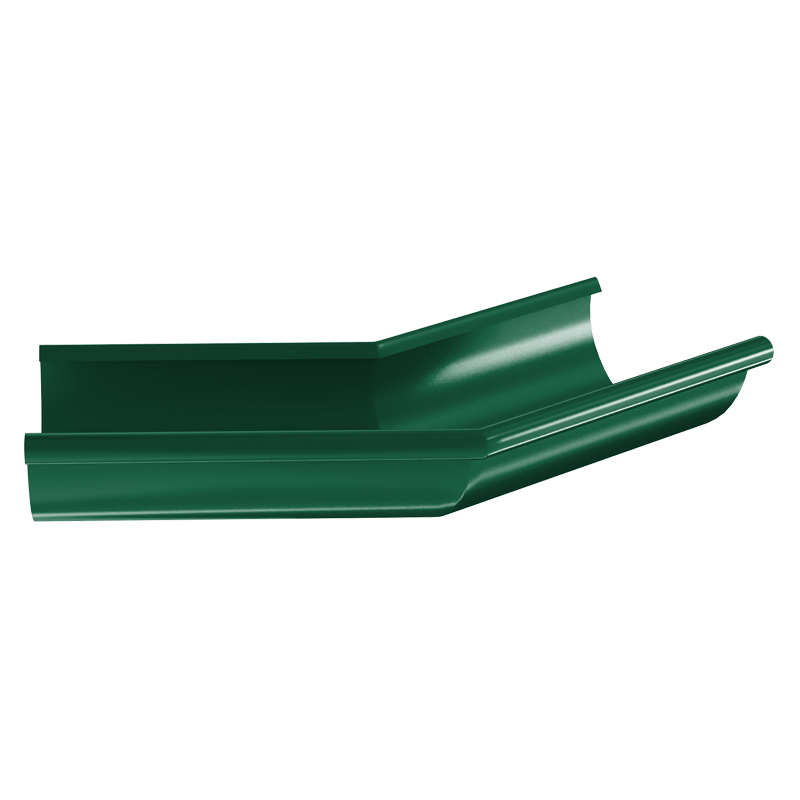 Угол желоба наружный 135° D125 мм RAL6005 Зеленый мох с покрытием Полиуретан (PUR) от производителя Аквасистем. Предназначен для соединения водосточных желобов под углом 135 градусов, для смены направления движения воды в стоке. Обеспечивает непрерывность линии водостока. Устанавливается на наружных/выступающих углах здания.