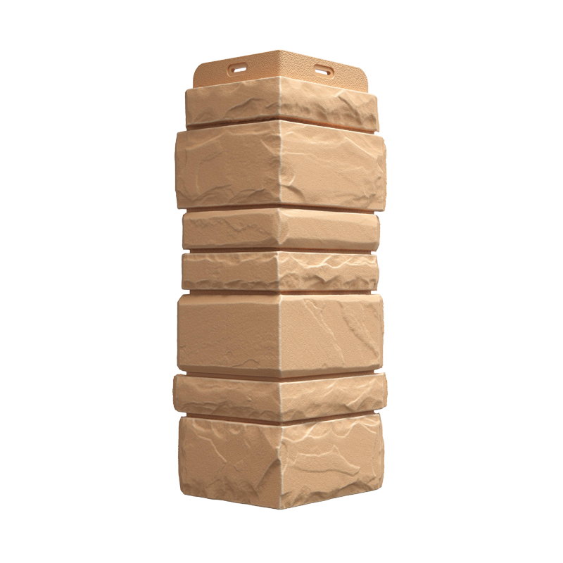 Внешний угол для фасадной панели под колотый слоистый песчаник с переливающейся текстурой поверхности Docke STERN длиной 427 мм. Предназначен для оформления наружных углов и отдельных архитектурных элементов фасада. Скрывает места угловых стыков фасадных панелей, защищает от проникновения влаги. Производятся углы из полипропилена и идентичны по структуре и цвету фасадным панелям Docke STERN.
