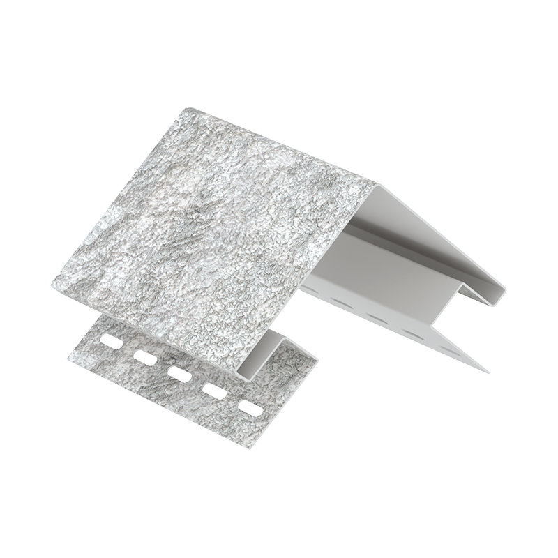 Внешний угол из винила для фасадных панелей Ю-Пласт StoneHouse Сланец Светло-серый длиной 3050 мм. Используется для декоративного оформления и защиты наружных углов фасада. Скрывает и укрепляет места угловых стыков фасадных панелей.