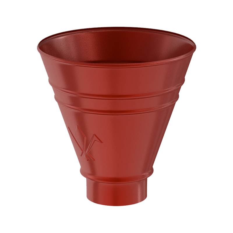 Воронка водосборная D90 мм RR29 Бургундская красная с покрытием Полиуретан (PUR) от производителя Аквасистем. Элемент водосточной системы, применяется для сбора воды со сложных форм крыш, фальцевых кровель, в тех случаях, когда сток не организован посредством желоба.
