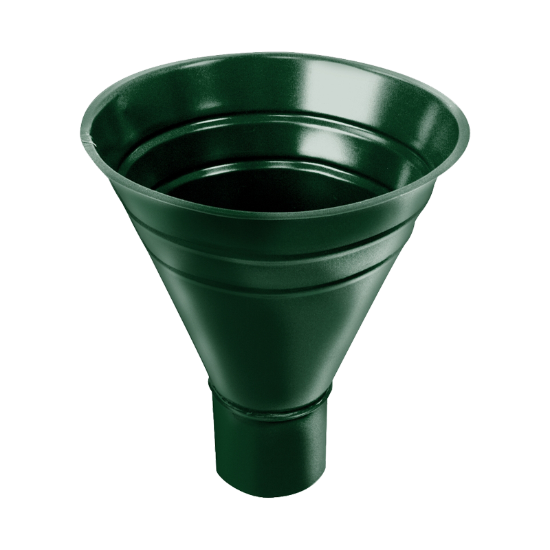 Воронка водосборная D125/90 мм зеленая RAL6005 с покрытием Granite Double от Гранд Лайн. Элемент водосточной системы, применяется для сбора воды со сложных форм крыш, фальцевых кровель, в тех случаях, когда сток не организован посредством желоба.
