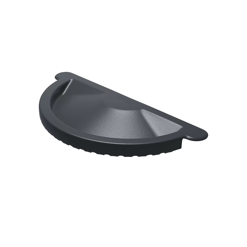 Заглушка желоба D125 мм темно-серая RAL7024 с покрытием Пластизол серии МП Престиж от Металл Профиль. Предназначена для закрытия торцов водосточных желобов.